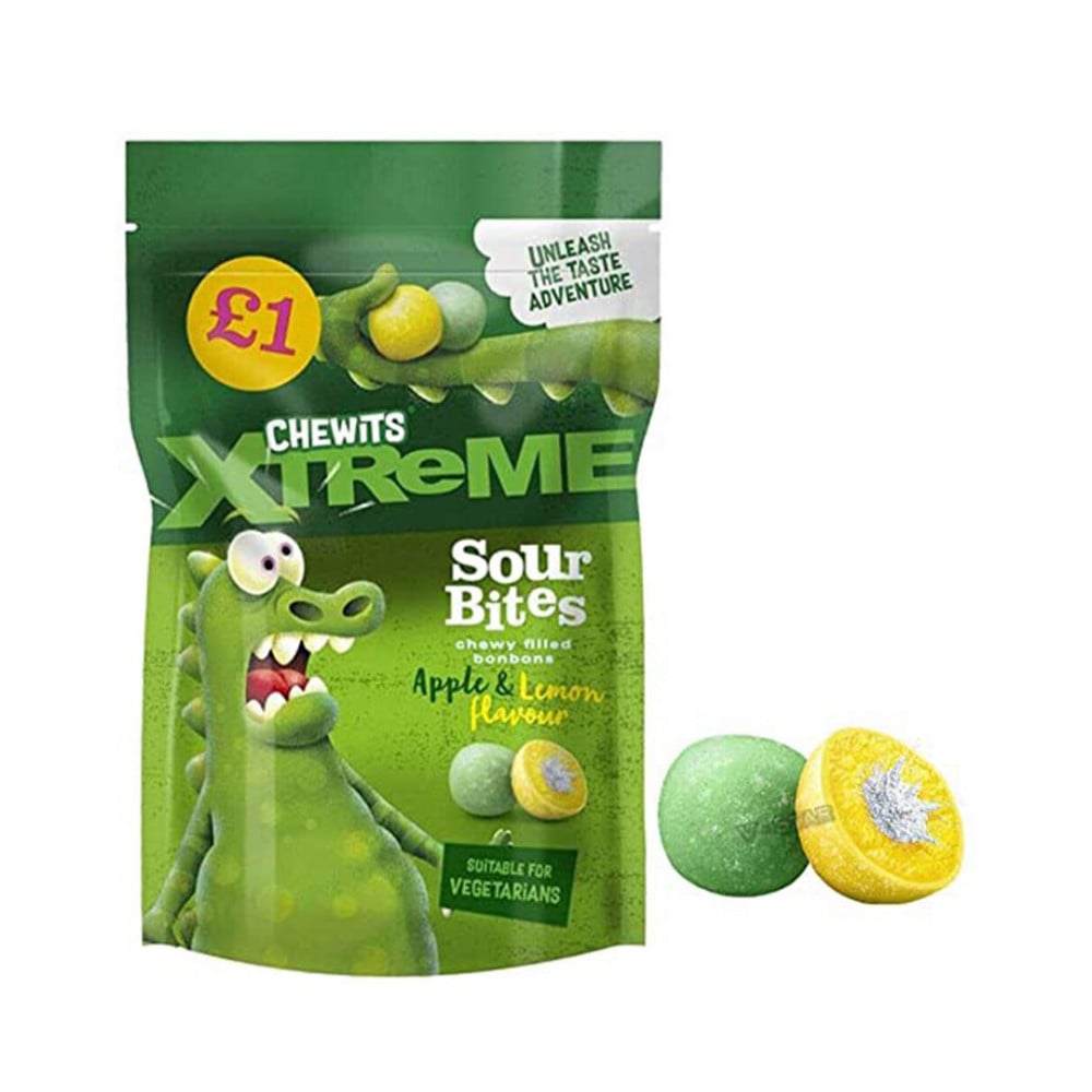 حلاوة مضغ لينة محشية سيرب تفاح وليمون التمساح شيويتس منتج بريطاني 145 جم